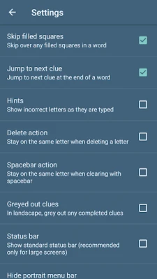 Enten du slapper av hjemme eller er på farten, er denne appen skreddersydd for din enhet. Med full støtte for både telefoner og nettbrett, tilpasser grensesnittet seg sømløst. Klyp og zoom for å justere rutenettet til din foretrukne størrelse, og snu enheten til liggende modus for en optimal oversikt med ledetrådene praktisk plassert ved siden av. Skreddersy opplevelsen ytterligere med en rekke nyttige innstillinger, designet for å forbedre spillegleden din. Du vil alltid finne tilbake der du slapp, takket være en praktisk fortsett-funksjon.