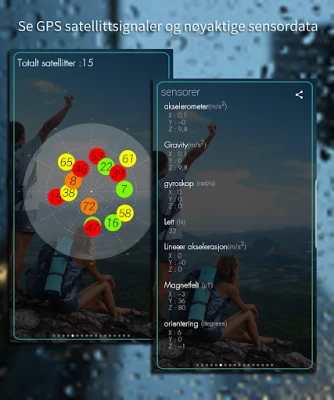 Utvid dine muligheter med avanserte målefunksjoner som den presise arealberegneren, perfekt for å fastslå størrelsen på tomter, land eller bygninger. Trenger du raskt å finne høyden eller avstanden mellom to punkter? GPS-verktøy leverer raske og nøyaktige resultater. Du kan også lagre dine favorittsteder for enkel tilbakevending, eller justere parabolantennen ved hjelp av sanntidsdata om satellittnummer og signalstyrke. Appen gir detaljerte sensordata fra enheten din, og for den ultimate bekvemmeligheten strekker funksjonaliteten seg til din Wear OS-smartklokke. Med GPS-verktøy på håndleddet har du alltid de viktigste verktøyene innen rekkevidde, og sikrer at du er forberedt på enhver situasjon, uansett hvor eventyret fører deg.