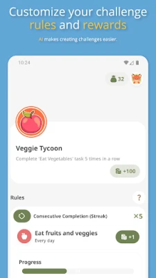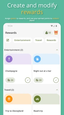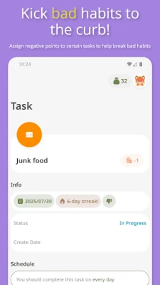 Kjernen i "Habit Tracker: Goals & Rewards" ligger i dens unike poengsystem. For hver vane eller oppgave du fullfører, belønnes du med poeng du selv har definert. Dette gjelder ikke bare for å bygge positive vaner; appen gir deg også et kraftfullt verktøy for å bryte negative mønstre. Ved å trekke fra poeng når du faller tilbake til uønsket adferd, synliggjøres konsekvensene på en umiddelbar og effektiv måte, noe som forsterker din besluttsomhet. Disse opptjente poengene kan deretter brukes til å løse inn personlige belønninger du har satt opp – kanskje en avslappende spadag, en ny bok, eller en velfortjent filmaften. Mulighetene er ubegrensede, og du skreddersyr motivasjonen helt etter dine egne ønsker. For å ta det et skritt videre, kan du også etablere ambisiøse utfordringer, som for eksempel å gjennomføre en spesifikk aktivitet seks dager på rad, og motta spesialemblemer eller ekstra poeng for fullføring.