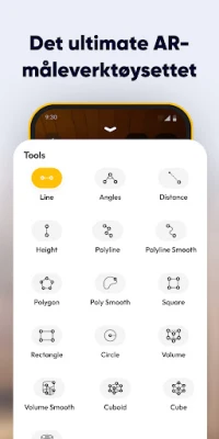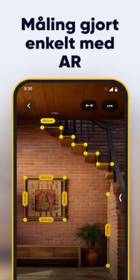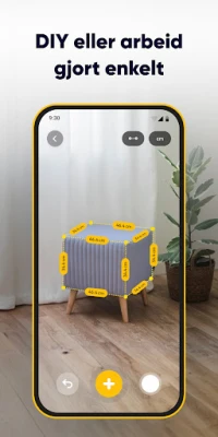 Denne avanserte AR-teknologien i DIGITALT MÅLEBÅND forenkler også komplekse oppgaver, som automatisk beregning av areal. Aldri mer manuell utregning – få svar umiddelbart. Alle dine målinger kan enkelt lagres, fotograferes og organiseres i oversiktlige mapper, slik at du alltid har dem tilgjengelig. Med fleksibilitet til å veksle mellom metriske og britiske enheter, er DIGITALT MÅLEBÅND ditt globale måleverktøy. Opplev en ny standard for nøyaktighet og brukervennlighet. Med AR Measure-appen er presisjon bare et trykk unna.