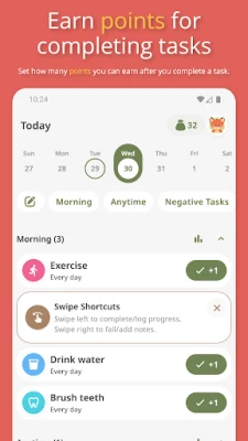 Kjernen i "Habit Tracker: Goals & Rewards" ligger i dens unike poengsystem. For hver vane eller oppgave du fullfører, belønnes du med poeng du selv har definert. Dette gjelder ikke bare for å bygge positive vaner; appen gir deg også et kraftfullt verktøy for å bryte negative mønstre. Ved å trekke fra poeng når du faller tilbake til uønsket adferd, synliggjøres konsekvensene på en umiddelbar og effektiv måte, noe som forsterker din besluttsomhet. Disse opptjente poengene kan deretter brukes til å løse inn personlige belønninger du har satt opp – kanskje en avslappende spadag, en ny bok, eller en velfortjent filmaften. Mulighetene er ubegrensede, og du skreddersyr motivasjonen helt etter dine egne ønsker. For å ta det et skritt videre, kan du også etablere ambisiøse utfordringer, som for eksempel å gjennomføre en spesifikk aktivitet seks dager på rad, og motta spesialemblemer eller ekstra poeng for fullføring.