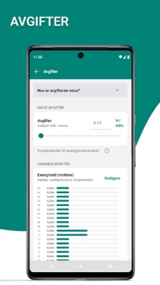 Dyk dypere inn i strømprisene med `Min Strøm-appen`s smarte tilleggsfunksjoner. Du kan tilpasse visningen til å inkludere eller ekskludere statlige avgifter, og få en detaljert oversikt over hvilke komponenter som utgjør den totale prisen. Lurer du på hva det koster å kjøre en vaskemaskin eller lade elbilen akkurat nå? Ett enkelt klikk på den aktuelle strømprisen avslører nøyaktig kostnad for dine spesifikke gjøremål. For å spare på enhetens eget batteri mens du navigerer i appen, tilbyr `Min Strøm-appen` også en praktisk mørk modus, enkelt tilgjengelig fra profilsiden din. Optimaliser strømforbruket ditt smartere – med `Min Strøm-appen`.