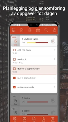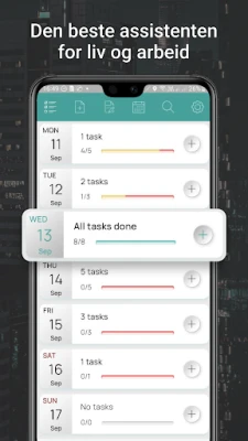 Opplev en betydelig økning i din daglige kapasitet. My Tasks lar deg sette konkrete mål for dagen og uken, og en visuell fremdriftsindikator motiverer deg til å overgå egne forventninger. Forestill deg å fullføre oppgaver opptil tre ganger raskere og øke din produktivitet med opptil 60%, samtidig som du eliminerer stresset med glemte tidsfrister. Denne allsidige løsningen fungerer som din personlige arrangør, planlegger, kalender og notisblokk, alt samlet i én intuitiv tjeneste som frigjør verdifull tid i en travel hverdag.